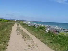 ![]() Path along the shingle ridge on the seaward side of the Murrough Wetlands | |