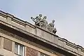 The Music (also known as The Music Group, Polish: Muzyka, Grupa Muzyka) is one of three sculptures[1] located on the roof of the building on Koszykowa Street 34/50 in Warsaw since 1952. The project was chosen after an artistic competition. The monument was designed by Józef Gosławski, but his wife - Wanda - and his brother - Stanisław - helped him with its realization because of the short deadline. Lack of scaffolds, problems with obtaining funds and the short deadline forced the artists[2] to write a letter to the chief architect of Warsaw - Józef Sigalin. After that, the conditions were improved and work was completed on time.[3]