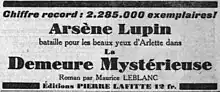 The Mysterious Mansion (French: La Demeure Mystérieuse) is a mystery novel by Maurice Leblanc featuring Arsène Lupin published in French first as a serial in June–July 1928 and as a book by Pierre Lafitte in July 1929.[1]