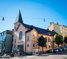 The museum is housed in the former Mission Covenant Church, also known as the Bethlehem Church, which was designed in 1904 by Frans Lindskog and was built between 1904 and 1909. The Mission Church, which is 675 square meters (7,270 sq ft), is located in the corner of Sturegatan-Esplanaden in Central Sundbyberg.[1] The Mission Church was part of the revival movement in Sweden which emerged during the 19th century modeled on that of England. The church was no longer used as a church as of 2005. It stood empty until 2008, when the art gallery Marabouparken used the building for some time as an exhibition hall.[2]