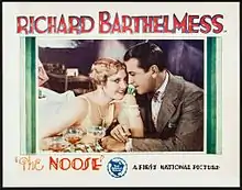 The Noose is an American silent drama film adaptation of the Willard Mack play The Noose, which was released in 1928. It stars Richard Barthelmess, Montagu Love, Robert Emmett O'Connor, and Thelma Todd. The movie was adapted by Garrett Graham and James T. O'Donohoe from the play. It was directed by John Francis Dillon and Richard Barthelmess's performance was nominated for the Academy Award for Best Actor.[1]