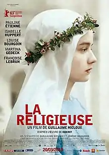 The Nun (French: La Religieuse) is a 2013 French drama film directed by Guillaume Nicloux. It is based on the 18th-century novel La Religieuse by French writer Denis Diderot. The film premiered in competition at the 63rd Berlin International Film Festival.[2] It received two nominations at the 4th Magritte Awards, winning Best Actress for Pauline Étienne,[3] and a nomination at the 39th César Awards.[4] Production companies included Les Films du Worso, Belle Epoque Films and Versus Production.[5]