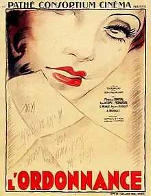 The Orderly (French: L'ordonnance) is a 1933 French drama film directed by Victor Tourjansky and starring Marcelle Chantal, Jean Worms and Fernandel. It is based on Guy de Maupassant's story L'ordonnance.[1] Tourjanski had already filmed the same story in 1921.[2] It was shot at the Joinville Studios of Pathé-Natan in Paris. The film's sets were designed by the art director Serge Piménoff. It was voted amongst the most popular films of the year by readers of the Pour Vous magazine.[3]