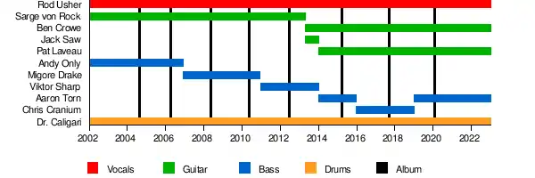 | Members | Rod Usher, Dr. Caligari, Pat Laveau, Ben Crowe, Aaron Torn |