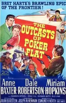 The Outcasts of Poker Flat is a 1952 American Western film directed by Joseph M. Newman and starring Anne Baxter and Dale Robertson.[1] The screenplay is based on a short story of the same name by Bret Harte. Harte's story has been brought to film at least five times, including in 1919 with Harry Carey and in 1937 with Preston Foster.