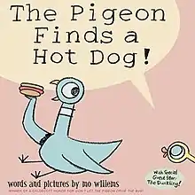 The Pigeon Finds a Hot Dog! is a 2004 children's picture book by Mo Willems. It is about the Pigeon that comes across a hot dog, and eventually shares it with a duckling. In 2010, an animated version of the book, narrated by Mo and Trixie Willems, and animated by Pete List, was released by Weston Woods Studio. Note that the film version has a 3d introduction.