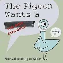 Booklist, reviewing The Pigeon Wants a Puppy!, wrote "Willems skillfully executes the formula that made previous Pigeon titles so popular: minimal artwork that places all the attention on the cajoling little bird, whose words and body language will strike a chord of familiarity with every child. Once again, kids will reach the story's end wondering what Pigeon will want next."[1] and the School Library Journal wrote "Kids will love this perfectly paced picture book, which offers both the expected (breaking the fourth wall, Pigeon's classic temper tantrum) and a new twist (Pigeon actually gets what he wants? Impossible!). Willems's hilariously expressive illustrations and engaging text are cinematic in their interplay. Maybe kids won't appreciate the genius behind it the way adults will, but that won't stop them from asking for this book again and again."[1]