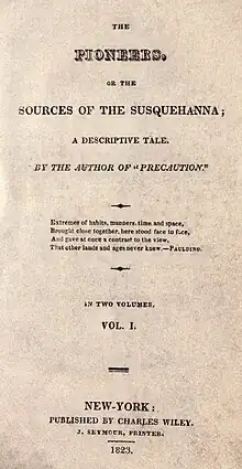 The Pioneers, or The Sources of the Susquehanna; a Descriptive Tale is a historical novel by American writer James Fenimore Cooper. It was the first of five novels published which became known as the Leatherstocking Tales. Published in 1823, The Pioneers is the fourth novel in terms of the chronology of the novels' plots.