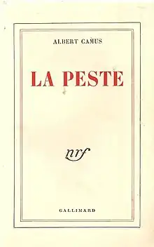 The Plague (French: La Peste) is a 1947 absurdist novel by Albert Camus. It tells the story from the point of view of a narrator in the midst of a plague sweeping the French Algerian city of Oran. The narrator remains unknown until the start of the last chapter. The novel presents a snapshot of life in Oran as seen through the author's distinctive absurdist point of view.[1]
