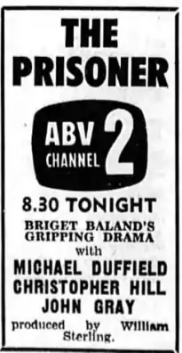 The Prisoner is a 1962 Australian television play based on a play which had been filmed with Alec Guinness.[2] Many Australian TV dramas at the time were based on overseas stories.[3]