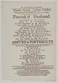 The play was a huge success and enjoyed a lengthy run at the theatre, boosting the finances of the struggling Drury Lane. It appeared to be the hit of the season, only to be eclipsed by the even more dramatic success of John Gay's The Beggar's Opera which opened three weeks later at the rival Lincoln's Inn Fields Theatre.[4] The Provoked Husband was revived frequently over the following century, become a staple part of the repertory in many theatres.