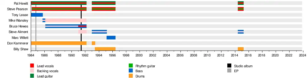 | Past members | Steve Aliment Bruce Hewes Pat Hewitt Don Kammerer Tony Lease Steve Pearson Billy Shaw Mike Wansley Marc Willett |
