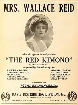 The Red Kimono (spelled as "The Red Kimona" in the opening credits) is a 1925 American silent drama film about prostitution produced by Dorothy Davenport (billed as Mrs. Wallace Reid) and starring Priscilla Bonner.[1] This is the debut film of Director Walter Lang.