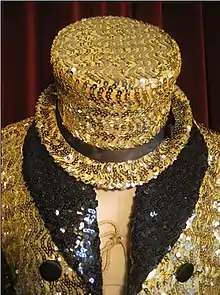 A replica costume based on the film's gold sequined swallow-tail coat worn by Little Nell, recreated by fan Mina Credeur of Houston, Texas.
