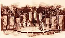 The design of the stage was such that major portions of the scenery were required to be removed Saturday nights after a performance, enabling the congregation of the church on Sunday morning to see the stained glass windows on the west front of the church, behind the back row of seats in the theatre itself.