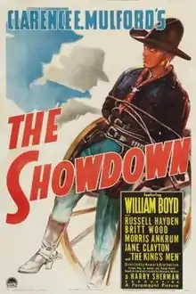 The Showdown is a 1940 American Western film directed by Howard Bretherton, written by Donald Kusel and Harold Daniel Kusel, and starring William Boyd, Russell Hayden, Britt Wood, Morris Ankrum, Jan Clayton, Wright Kramer and Donald Kirke. It was released on March 8, 1940, by Paramount Pictures.[1][2]