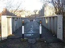- 03.51 - aerial view of two girls crossing Crawford Bridge from Albion Terrace to Bothwell Street