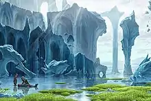 By the final edit of the script, many events had to be refined.[50] Gerda and Kai become sister and brother rather than neighbors. The robbers from Andersen's story become pirates for the film. The script did keep the concept of the magic mirror intact.[51] However the mirror of the devil that reflects evil from Andersen's fairy tale was completely changed to the magic mirror of Master Vegard that reflects souls. The difference was added to highlight the conflict between the characters of Master Vegard who is described as an artisan wizard and The Snow Queen.[52] Another difference from the source material is the character troll will kidnap Kai, instead of the character the Snow Queen.[52] The concept of a wind that seeks its enemies called the North Wind became one of the main antagonists of the story.[53] Gerda is characterized as a spirited, pugnacious girl who fights for justice in contrast to the moral, upright Gerda found in Andersen's fairy tale.[48][54] Kai the brother from the fairy tale is depicted as a talented artist in the film.[55]
