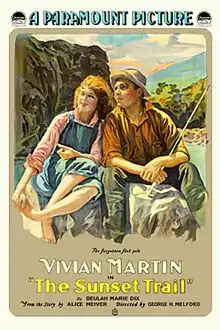 The Sunset Trail is a 1917 American silent drama film directed by George Melford, written by Beulah Marie Dix and Alice McIver, and starring Vivian Martin, Henry A. Barrows, William Elmer, Harrison Ford, Charles Ogle, and Carmen Phillips. The picture was released on October 13, 1917, by Paramount Pictures.[1][2]