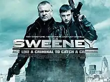 The Sweeney is a 2012 British action drama film, inspired by the 1970s The Sweeney, the British television police drama of the same name, but set in contemporary London. Written and directed by Nick Love, from a story by Love and John Hodge, it is based on the characters created by Ian Kennedy Martin. It stars Ray Winstone as Jack Regan, Plan B (credited as Ben Drew) as George Carter, and Damian Lewis as Frank Haskins, with Allen Leech and Hayley Atwell.