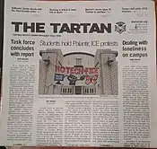 The Tartan has traditionally published an annual joke issue called the "Natrat" (Tartan spelled backwards) on April Fool's Day. In the 2004 edition, a comic containing a racial slur for African Americans and a "joke" about murdering an African American, along with other offensive items, includint as a poem about the fatal rape of a woman with an ice skate blade, was published. Jim Puls, the editor-in-chief and Alex Meseguer, the managing editor resigned in the wake of the ensuing media attention and campus outcry.[1][2] Bob Rost, the artist of the offending cartoon was also dismissed from the newspaper.[3]