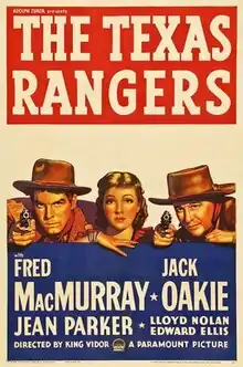 The Texas Rangers is a 1936 American Western film directed by King Vidor and starring Fred MacMurray and Jack Oakie. The picture was nominated for Best Sound Recording (Franklin Hansen) at the 1936 Oscars.[1][2] The film was inspired by incidents from Walter Prescott Webb's 1935 history book The Texas Rangers, A Century Of Frontier Defense[3] but filmed in New Mexico.