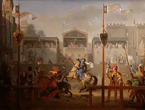 The Tournament is a major 1812 painting by Pierre Révoil, who presented it to the Museum of Fine Arts of Lyon (which still owns it) sometime before 1815. It shows the final moments of a legend of Bertrand Du Guesclin, when he reveals his identity after competing anonymously in a tournament and beating all comers.