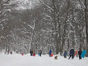 Tourne County Park is a county park in Morris County, New Jersey, United States. The park covers 547 acres (2.2 km²) in four different municipalities, Mountain Lakes, Denville, Boonton Township, and Parsippany. It includes bike trails, equestrian trails, hiking trails, picnic areas and play areas. Sledding and cross-country skiing are also allowed in the winter. Hiking and biking are the most common activity at this park with several miles of gravel trails that climb a small mountain that has scenic views of the Rockaway Valley and east to New York City, which locals dubbed "The New York Overlook". The top of The Tourne is a great place to stop after a hard hike or ride and also has a 9/11 memorial to honor the fallen.