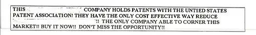Certain promoters of stocks claim that their companies have “patents registered with the Untied [sic]States Patent Association”. This is a meaningless designation because: