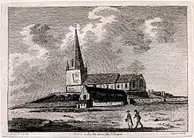 Somewhere around A.D. 968, monks, from the Benedictine monastery of Mont Saint-Michel, came to Guernsey to establish a community in the North of the Island. It is likely that at one time a land bridge connected the two sections next to the Vale church, before the sea broke through.[2] In 1204 it is reported that the Royal Court of Guernsey visited the Braye du Valle to replace boundary markers that had been washed away.[3] This area of Guernsey would form a separate island at high tide, and continued to do so until 1806. The Priory of Mont Saint-Michel was a dependency of the famous Abbey of Mont Saint-Michel. The last remaining stonework is a piece of buttressed wall to the South of the church, by the roadside.