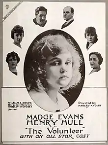 The Volunteer is a 1917 American silent drama film directed by Harley Knoles and starring Madge Evans, Henry Hull and Muriel Ostriche.[1] It was shot at Fort Lee studios.