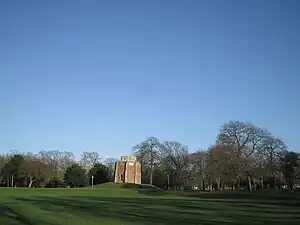 Sitting in the centre of The Walks is the Red Mount chapel, also known as 'Our Lady's Chapel' it is a Grade I listed building.[2] It was built in the 15th century to contain a relic of the Virgin, but was also used by pilgrims on their way to Walsingham.[3] It was built by Robert Corraunce on instructions from the Prior of Lynn. The inner core is divided into 3 storeys and there is an additional cross-shaped ashlar building in Ancaster stone on top.[4] The Red Mount was the subject of a painting by Thomas Baines.[5]