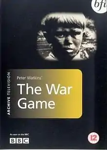 The War Game is a 1966 British pseudo-documentary film that depicts a nuclear war and its aftermath.[1] Written, directed and produced by Peter Watkins for the BBC, it caused dismay within the BBC and also within government, and was subsequently withdrawn before the provisional screening date of 6 October 1965.[2] The corporation said that "the effect of the film has been judged by the BBC to be too horrifying for the medium of broadcasting. It will, however, be shown to invited audiences..."[3]