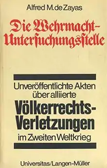 The Wehrmacht War Crimes Bureau, 1939–1945 is a book by Alfred-Maurice de Zayas. It was published in November 1979 in Germany by Universitas/Langen Müller under the title Die Wehrmacht-Untersuchungsstelle, and in America in 1989 under the title The Wehrmacht War Crimes Bureau, 1939-1945 by the University of Nebraska Press. Professor Howard S. Levie, an expert in international humanitarian law, provided the preface for the American version. The book describes some of the work of the Wehrmacht War Crimes Bureau, a special section of the legal department of the Wehrmacht High Command, which collected reports of alleged Allied and German war crimes for purposes of diplomatic protests, war crimes trials, and white books.