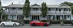 The building was originally constructed in 1905 as a railways administration block in Woburn, Lower Hutt.[1] A new site for the building was purchased in 2001 on Main Street, Greytown. The intention was to provide accommodation at the higher end of the market, and attract weekend visitors from Wellington.[2] The former railways building was cut into six sections for transport over the Remutaka Hill road.[1] During the transport of one of the sections in December 2002, the transport trailer was knocked off balance by a particularly strong gust of wind. Both lanes of the Remutaka Hill road were closed for more than four hours,[3] and a crane had to be brought in to rescue the load.[4]
