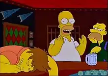 The Lexington Herald-Leader's Heather Svokos was not as pleased. She stated that "As always, the show is better written than most anything on TV, but for a 10th season premiere, it didn't blow me out of the water."[13] In addition, Phil Kloer of The Atlanta Journal gave the episode a C grade, calling it an "off episode". He commented that it "doesn't have the zing that most Simpsons episodes do." Kloer did, however, enjoy Homer's inventions such as the hamburger earmuffs and the make-up gun, and Homer's line to Marge before he shoots her with it: "Try to keep your nostrils closed."[14] Marge's response after being shot, "Homer! You’ve got it set on whore!", was commended by The Gazette,[15] DVD Verdict,[16] and Ian Jane of DVD Talk, who called the scene the highlight of the episode.[17]