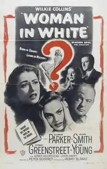 The Woman in White is a 1948 American historical mystery drama film directed by Peter Godfrey and starring Alexis Smith, Eleanor Parker, Sydney Greenstreet, and Gig Young. It was produced and distributed by the Hollywood studio Warner Brothers. The screenplay is based on Wilkie Collins' 1860 novel The Woman in White and is set in Victorian England.[1]