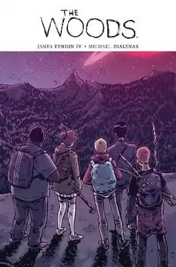 The Woods is a serialized graphic novel written by James Tynion IV, with art by Michael Dialynas. In the story, more than 500 students, faculty, and staff from a Midwestern preparatory school vanish from Earth, and reappear on the forested moon of a planet in another star system.