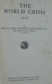 The World Crisis is Winston Churchill's account of the First World War, published in six volumes (technically five, as Volume III was published in two parts). Published between 1923 and 1931: in many respects it prefigures his better-known multivolume The Second World War. The World Crisis is analytical and, in some parts, a justification by Churchill of his role in the war. Churchill denied it was a "history," describing the work in Vol. 2 as "a contribution to history of which note should be taken together with other accounts."