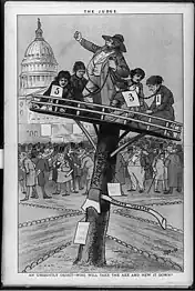 The twin relics of barbarism refer to the popular nineteenth-century phrase that linked the practices of slavery and polygamy in the United States. Attention to these twin relics increased following the 1856 Republican National Convention as the party acknowledged both practices in their party platform. Within the party's planks, they called on Congress to firmly denounce the "twin relics of barbarism –– Polygamy and Slavery."[1] During this period, slavery was widely practiced among southern states, and polygamy was becoming prevalent among members of the Church of Jesus Christ of Latter-day Saints (popularly referred to as Mormons). The growth of these practices stoked fear and uncertainty in the nation at large as the two practices were seen as "incongruous with the pure and the free, the just and safe principles inaugurated by the [American] Revolution."[2] As a result of the widespread opposition to each, they were increasingly coupled together in national print media throughout the country.