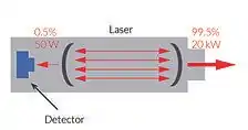 As an alternative, detectors can be used for sporadic measurements at the laser system output. Usually, the full beam is measured in this case.[21]
