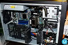The ThinkStation P310 is an "entry-level" workstation and replacement for the P300 ThinkStation. It comes standard with an Intel Xeon E3-1200v5 processor and an Nvidia GPU. It can accommodate up to 64 GB of RAM, and supports Lenovo's FLEX drive system.[7]