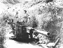 In addition to the close patrol work, demonstrations against Ottoman defences were made during the nights of 17 and 18 September, by the 1st Light Horse Brigade and a regiment of 2nd Light Horse Brigade, which rode out from the bridgeheads in the Jordan Valley. The Ottoman "heavy high-velocity gun" retaliated, firing shells on Jericho, and to the north of town on Chaytor's headquarters in the Wadi Nueiame.[13][40]