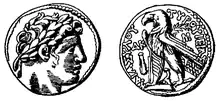 The Tyrian shekel weighed four Athenian drachmas, about 14 grams, more than earlier 11-gram Israeli shekels, but was regarded as the equivalent for religious duties at that time.[13] Because Roman coinage was only 80% silver, the purer (94% or more) Tyrian shekels were required to pay the temple tax in Jerusalem. The money changers referenced in the New Testament Gospels (Matt. 21:12 and parallels) exchanged Tyrian shekels for common Roman currency.[14][15]