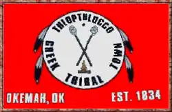 The tribal jurisdictional area of Thlopthlocco is within Creek, Hughes, Mayes, McIntosh, Muskogee, Okfuskee, Okmulgee, Rogers, Seminole, Tulsa, and Wagoner Counties.[1] The tribe maintains a close relationship with the Muscogee (Creek) Nation and falls under the jurisdiction of their tribal courts.