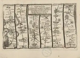 After much difficulty, since most of the town's records were lost, Gardner published in 1754 by subscription An Historical Account of Dunwich, antiently a city, now a borough; Blithburgh, formerly a town of note, now a village; Southwold, once a village, now a Town-corporate; with remarks on some places contiguous thereto. … Illustrated with copperplates. Prefixed to some copies is a modernised version of Agas's plan by Joshua Kirby. Agas's report of the state of the town and harbour referred to above is printed from the original manuscript then in Gardner's possession on pp. 20–2.[2]