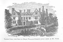 He was also the surveyor for the Montgomeryshire Turnpike Trusts and was responsible for the design of many new roads in the county.[5] He became county surveyor for Denbighshire around 1820. He had married Frances Kirk, daughter of the Wrexham iron master Richard Kirk (1747–1839) in 1814, and at first lived at Overton-on-Dee, but by 1823 he had moved to Oswestry, where he set up his office known as "Penson's Chambers" at 35 Willow Street, while he lived at 19 Willow Street. In 1839, his wife inherited from her father Gwersyllt Hall or Hill near Wrexham, which Penson remodelled in Neo-Jacobean style, and which became their home.[6] Among Penson's pupils were J. W. Poundley, who was to become the Montgomeryshire county surveyor in 1861, and the Welsh poet John Jones (Talhaiarn). Penson was Mayor of Oswestry in 1840.