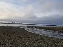 The island has a size of 170 acres (0.69 km2), and the highest point is a drumlin that reaches a height of 78 feet above sea level. The rest of the island comprises low rolling hills and a salt marsh. The island has a mixed vegetation, including hardwood tree stands, remnant pear and apple orchards, ornamental trees and shrubs, and salt marsh grasses. The island has open meadows, forests, marine wetlands, sumac groves, and a variety of other geological features as well. Amenities include a formal school campus complete with classrooms, dormitories, dining hall, auditoriums, gymnasium, lab space, outdoor challenge courses, and climbing towers.[1] At low tide, a sandbar connects it to Squaw Rock on the Squantum peninsula, allowing land travel between the two.