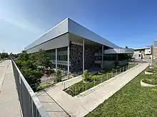 The Overlea Bridge, formally known as the Charles H. Hiscott Bridge, was built in 1960 to cross the west branch of the Don River and connect Overlea Boulevard to Don Mills Road, linking Thorncliffe Park to Flemingdon Park. The bridge was named for former mayor of Leaside Charles Henry Hiscott (1956 to 1961).[16] Reconstruction is planned for the 2022-2025 period as part of the Renewing Overlea Boulevard project and will included widened sidewalks, the addition of cycle tracks and public art.[17]