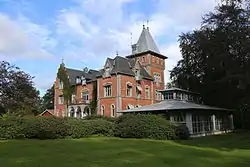 Thorskog House (Swedish: Thorskogs slott) is a manor house in Bohuslän, Sweden. It is located in Lilla Edet Municipality. It was built in 1892 in accordance with the plans of architect Carl Fahlström (1854-1920). [1]